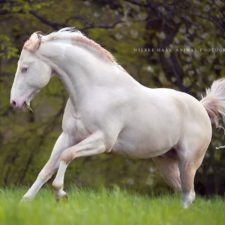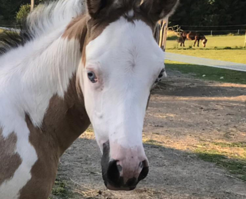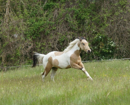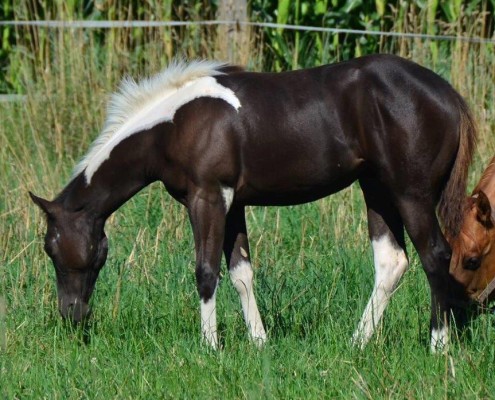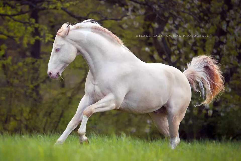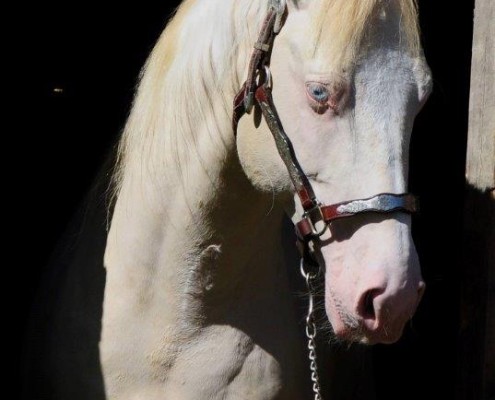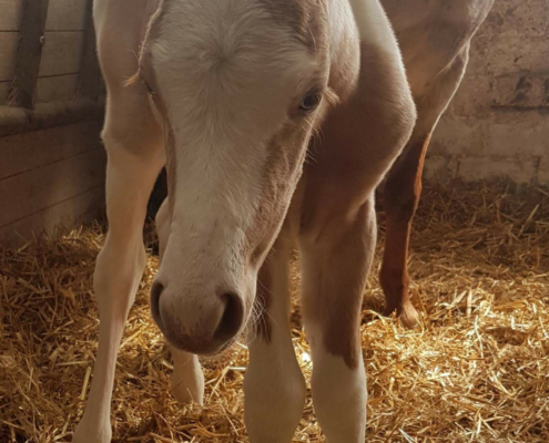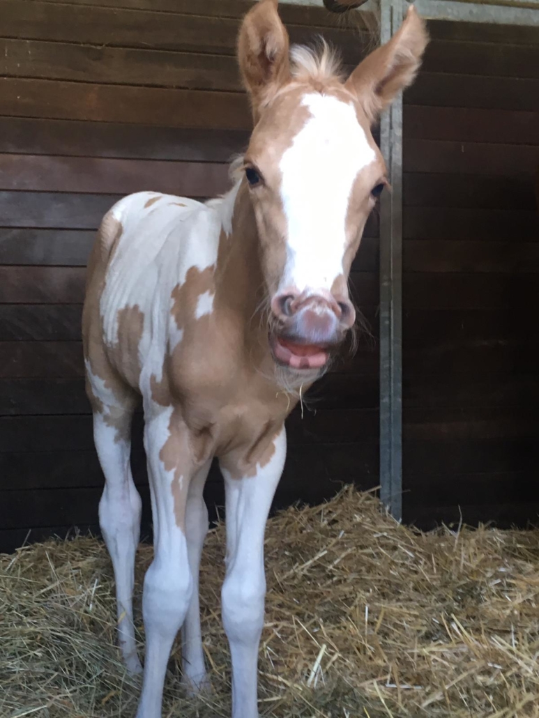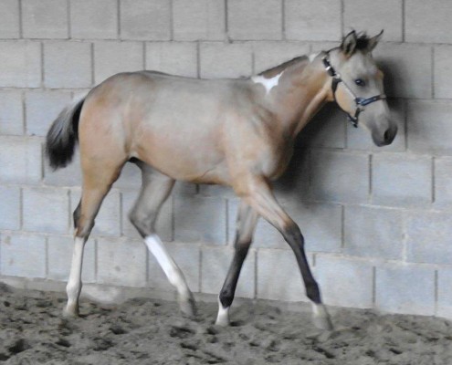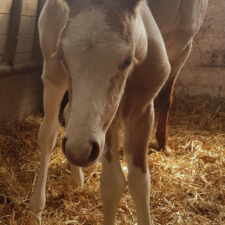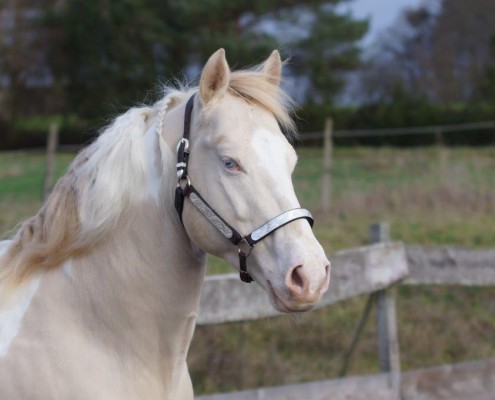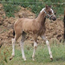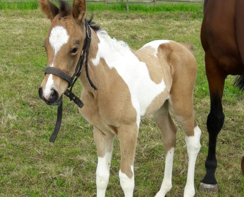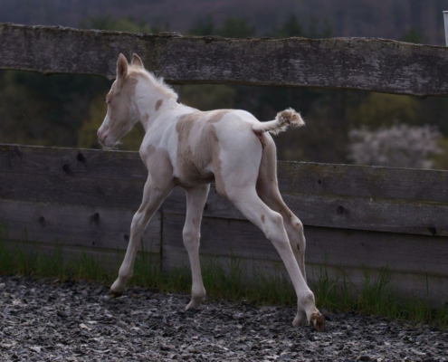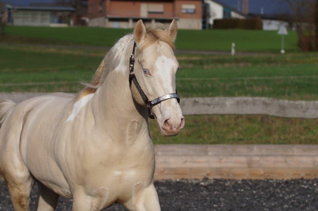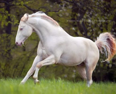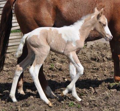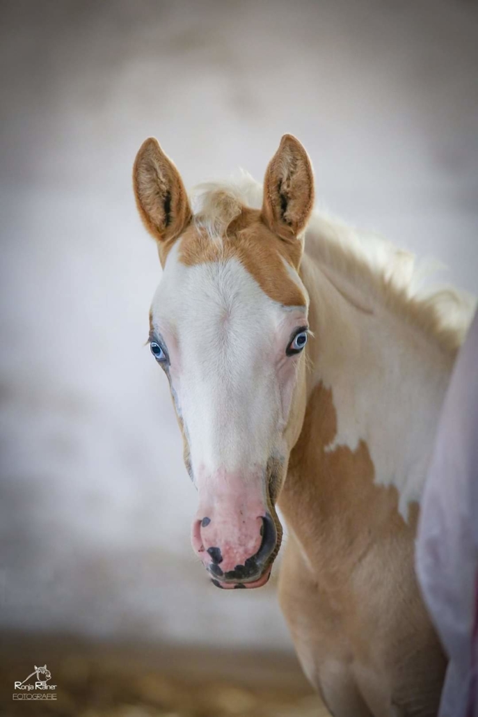 - Fellfarbe: Perlino Tobiano